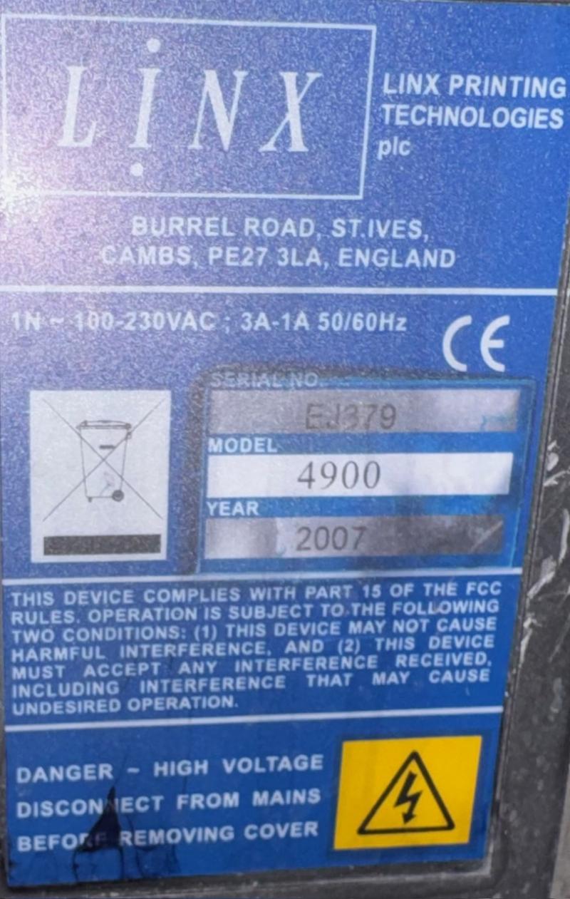 Linx 4900 CIJ Code Printer SKU: 12696PR Stock: 2Manufacturer: LinxModel: 4900Serial Number: EJ379 EJ376Type: code printerCondition: Used Enter Quantity Status: Active